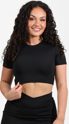 The Ferox Top is built for women who embody controlled power—athletes who train with intensity, move with purpose, and express strength through simplicity. Inspired by the Latin ferox meaning fierce, wild, or bold, this cropped performance tee delivers the perfect balance of sleek design and functional athletic engineering.